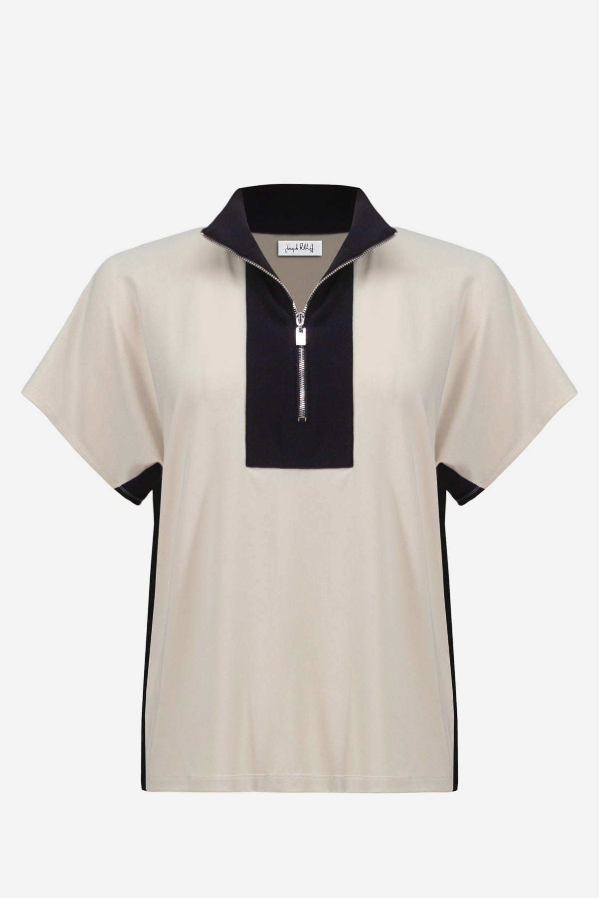 Silky Knit Color Block Straight Top With Zipped Collar Joseph Ribkoff