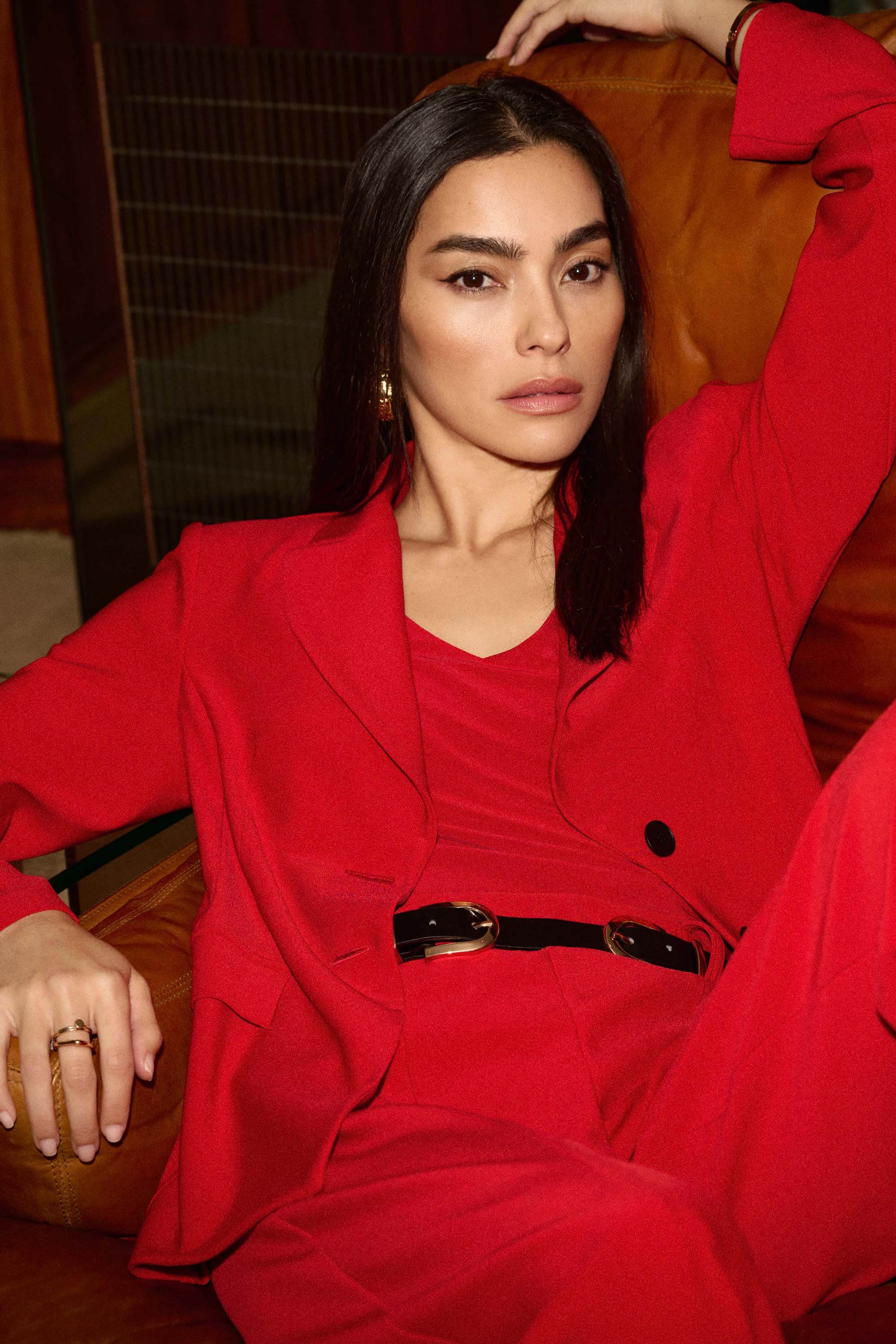 Tailored in a flattering fitted silhouette, this blazer seamlessly blends poise and comfort. The silky knit design features a sleek notch collar and two-button closure to complement the garment’s classic appeal. The princess cut at the front and back as well as the pocket flaps elevate the piece’s polished look.