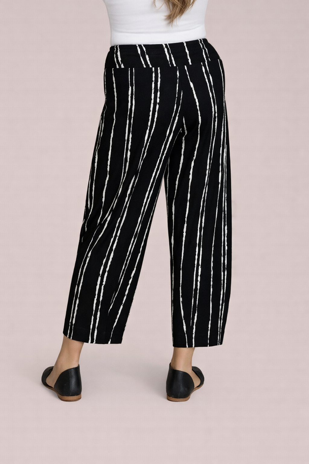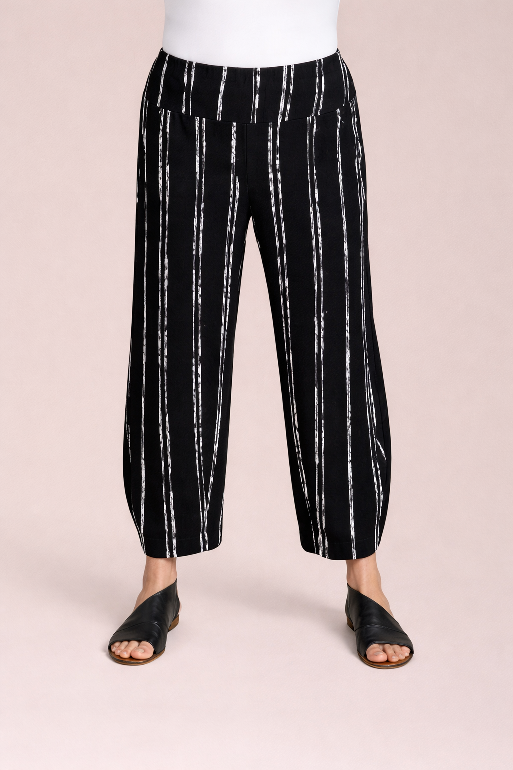 These Narrow Lantern Pant offer a chic, relaxed fit that tapers elegantly at the hem. The pull-on waistband ensures comfort, while the cropped length and vertical print create a flattering, lengthening silhouette. Crafted from lightweight, fluid fabric, they move with you effortlessly. Style them with your favorite tops for an effortlessly polished everyday look.