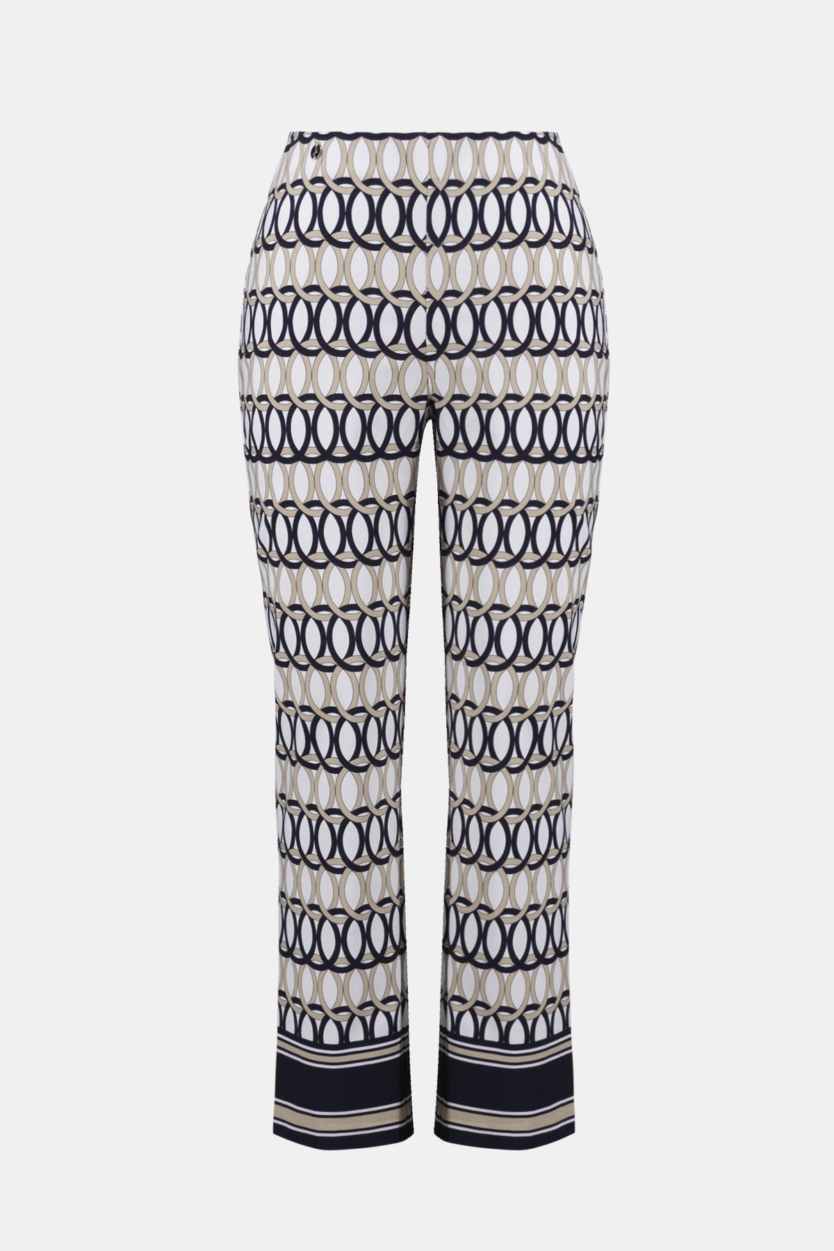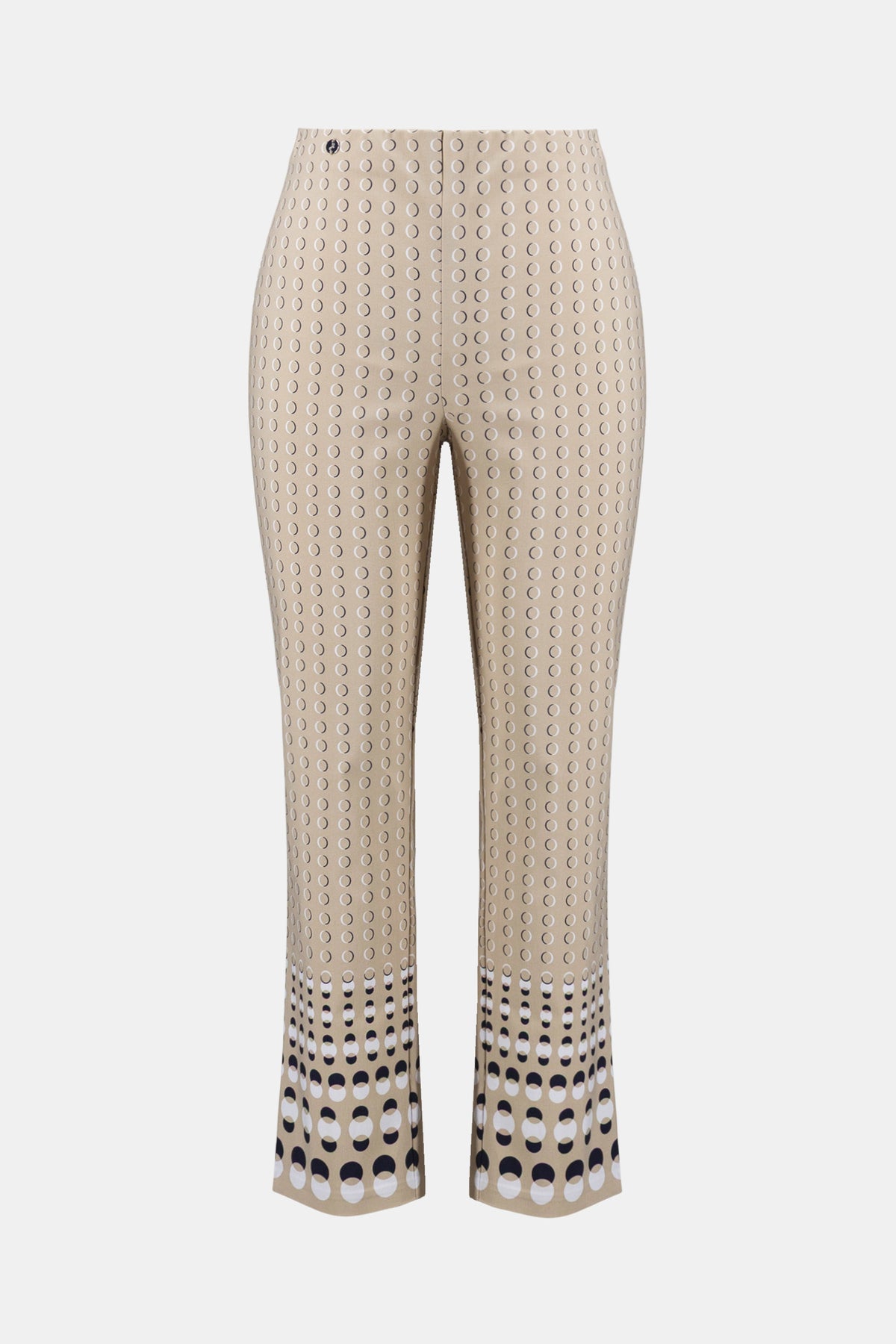 Smart and graphic, these straight-leg millennium pants feature a bold geometric dot border print, a hidden elastic waistband for smooth comfort, and a subtle JR ornament at the front waist.