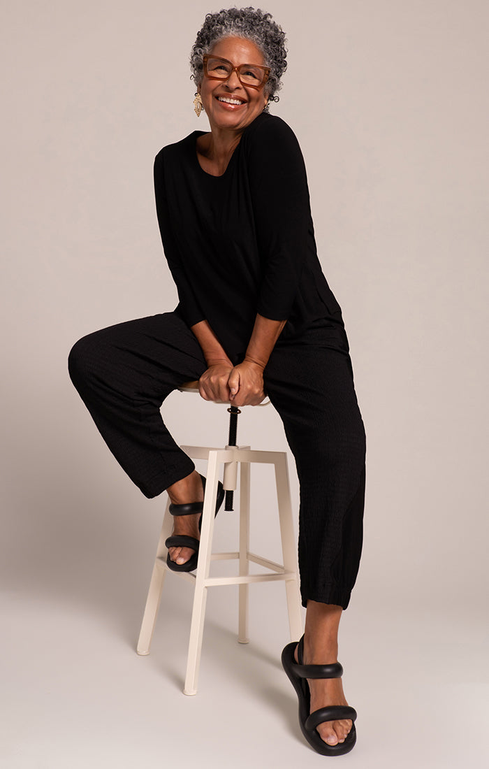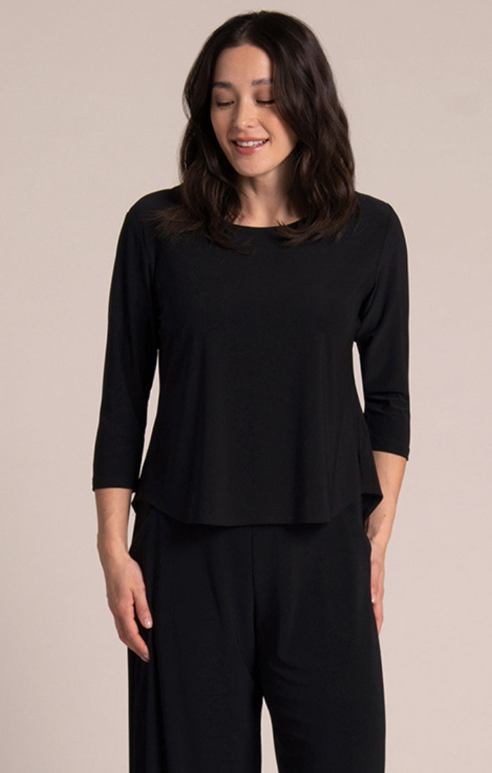 The Go-To Classic T Relax 3/4 Sleeve has long been a favorite for its timeless appeal. Now, it’s offered in a shorter length, making it an ideal match for any look. Featuring a round neckline, 3/4 sleeves, and a classic fit enhanced by flattering side slits, this top is crafted from our signature soft jersey fabric for all-day comfort.