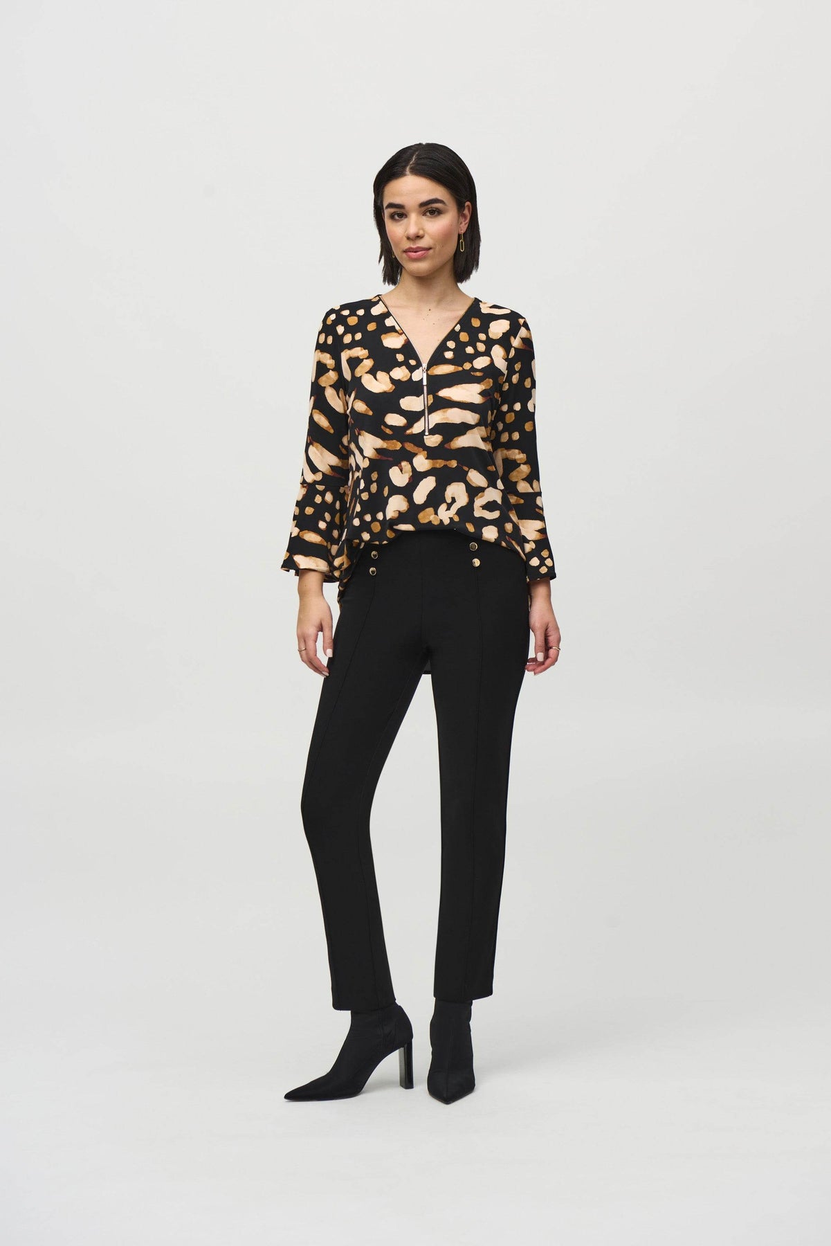 Sublimez votre style quotidien avec cette tunique cintrée et évasée, à la fois charmante et captivante. Dotée de poignets évasés, d'un col zippé et d'un ravissant imprimé animal, cette tunique en maille soyeuse d'inspiration rétro respire l'élégance et le panache. Plongez dans l'univers sauvage et luxueux de la mode avec cette pièce incontournable.