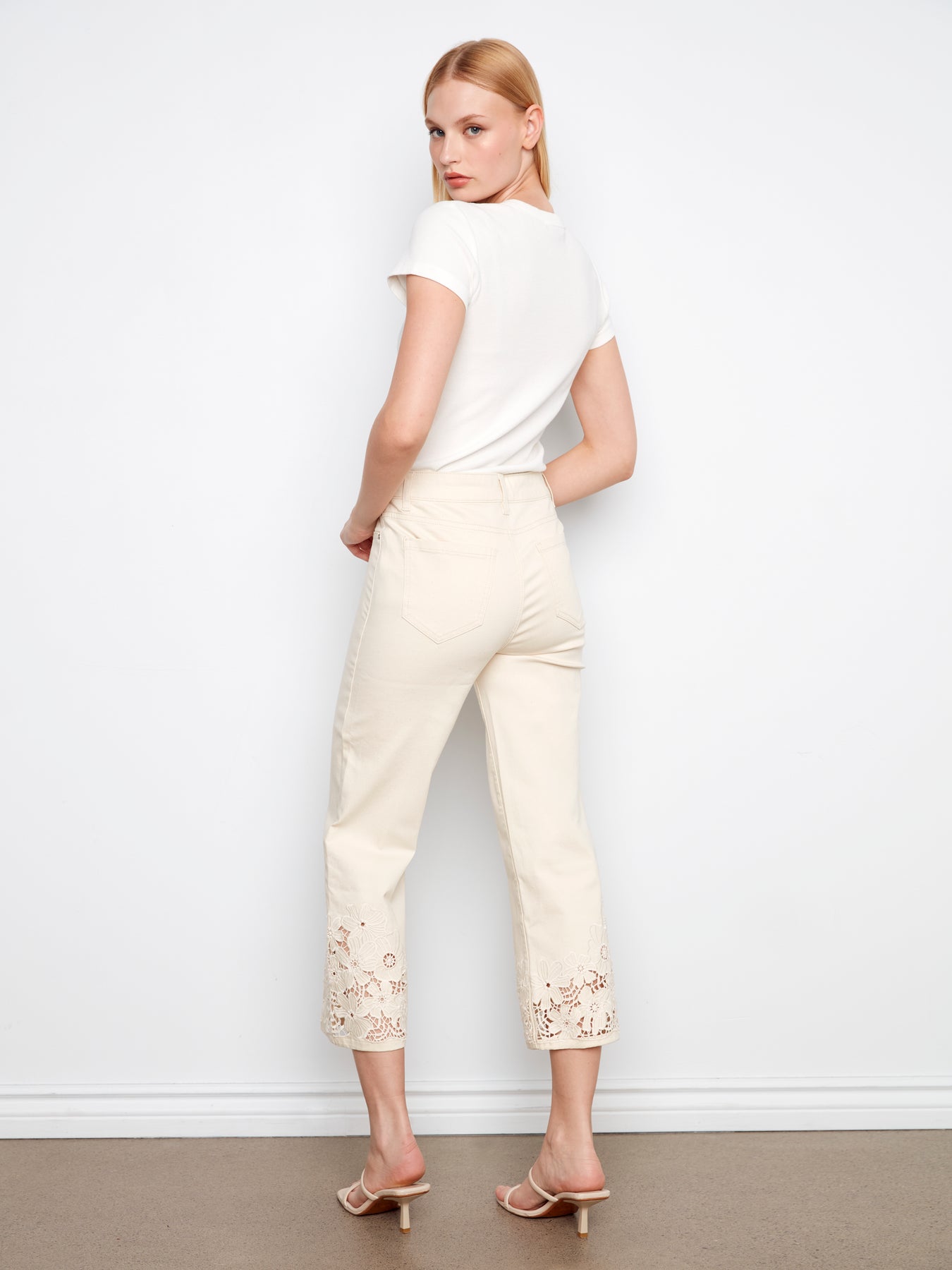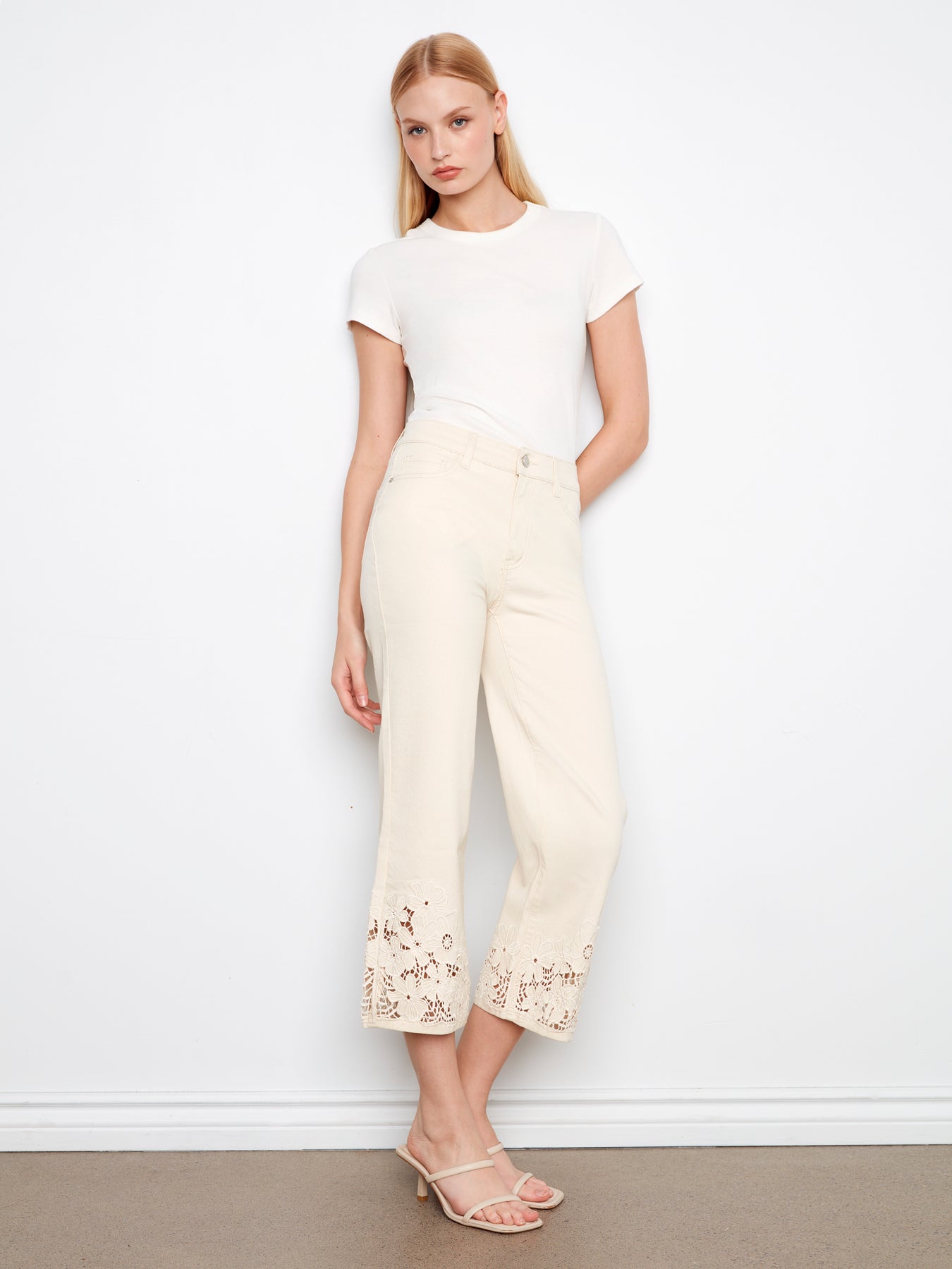 Cropped Flare Twill Jeans With Floral Lace Hem Charlie B