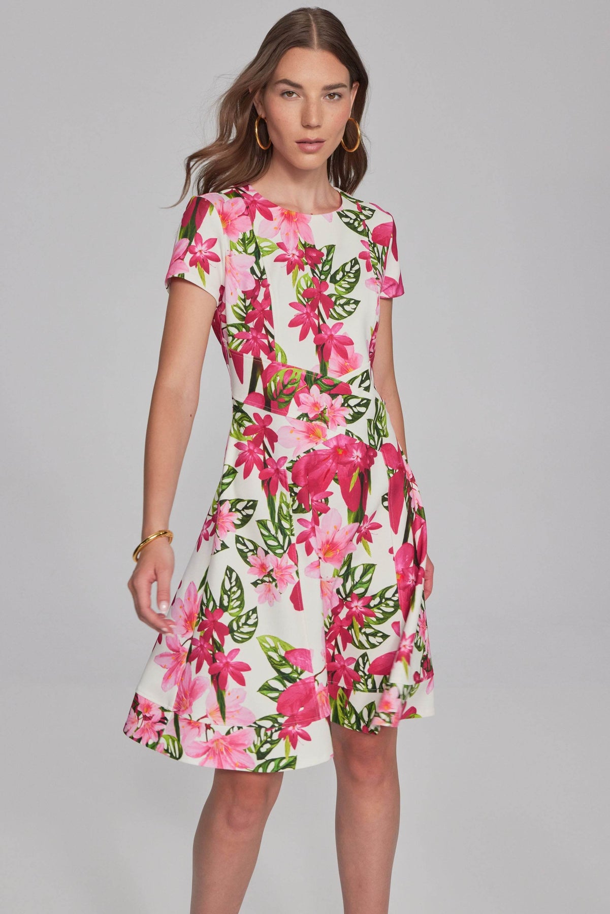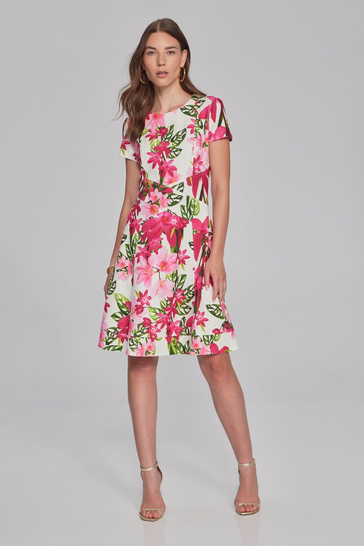 Floral Print Scuba Crepe Fit-And-Flare Dress - Dream Pants