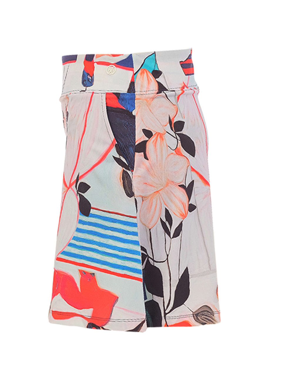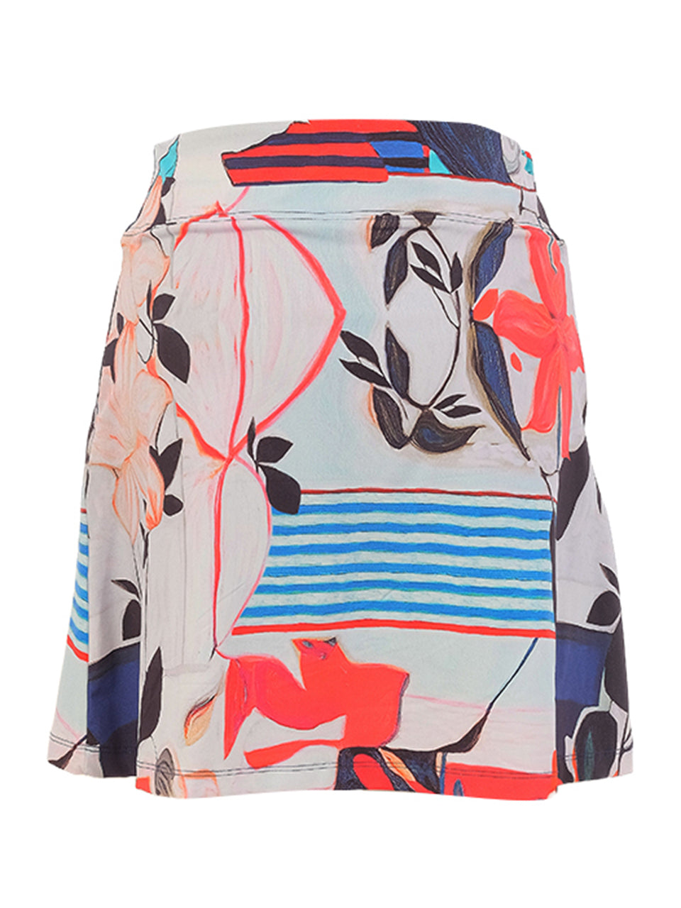 Artful and vibrant, this pull-on skirt brings a fresh burst of color to your active wardrobe. Featuring an abstract floral print with soft coral, navy, and sky-blue accents, it blends artistic charm with sporty ease. The comfortable waistband and streamlined silhouette create a flattering fit, while functional pockets add everyday practicality for effortless style on and off the course.
