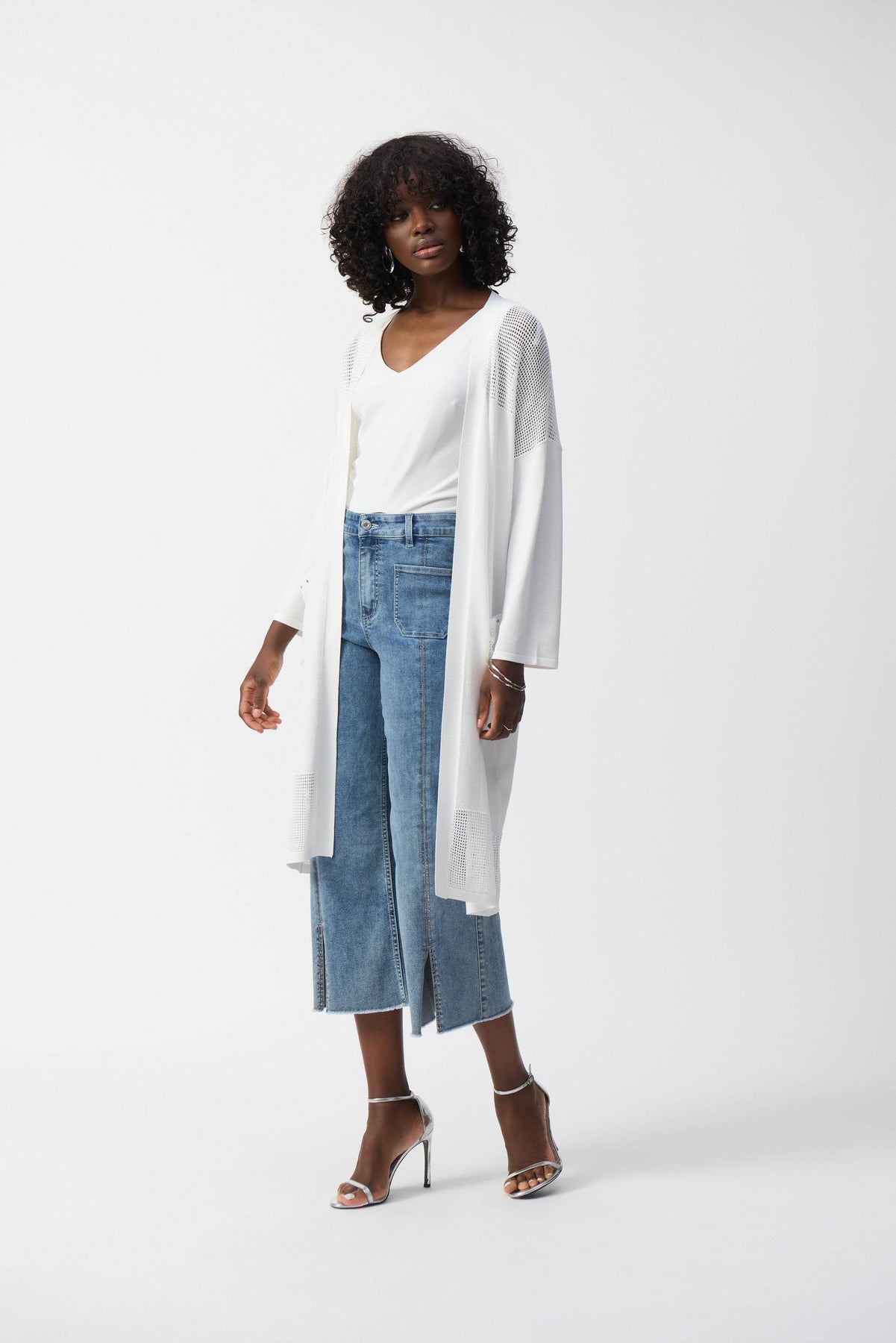 Renouvelez votre garde-robe avec ce magnifique jean culotte. Ce jean élégant est doté de quatre poches pratiques et d'une couture avant ornée qui lui confère une allure sophistiquée. La fente et l'ourlet effiloché ajoutent une touche tendance, faisant de ce pantalon un incontournable.