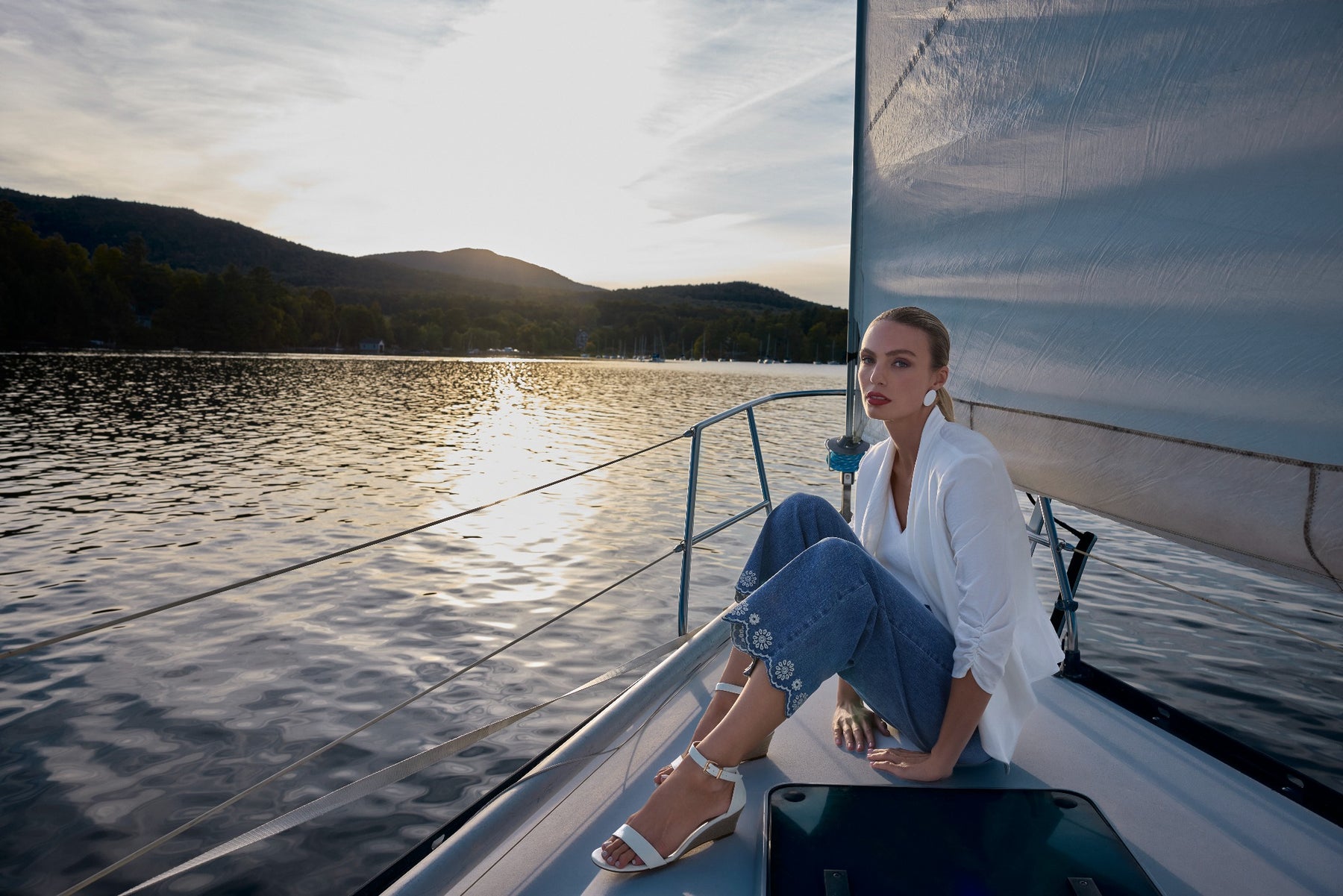 A straight-leg cropped jean with delicate floral embroidery on the pockets and hem. The tie belt adds a flattering touch at the waist, while the scalloped edge detail gives it a soft, feminine finish. Easy to dress up or down for everyday wear.