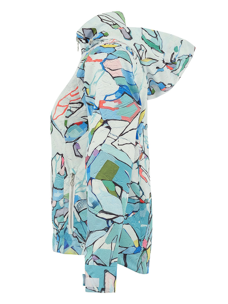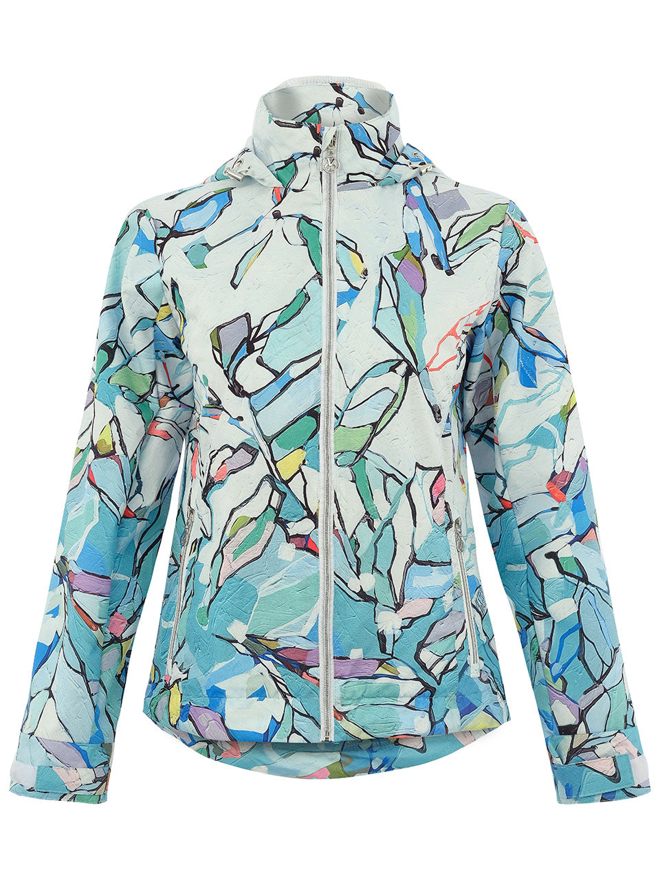 Make every round feel like a fresh start with this vibrant performance jacket. Featuring an artistic mosaic-inspired print and a sleek zip-front design, it blends sporty function with standout style. The lightweight stretch fabric offers breathable comfort and freedom of movement, while the stand collar adds a polished athletic finish. Perfect for layering on cool mornings at the course or adding a colorful statement to your everyday active look.