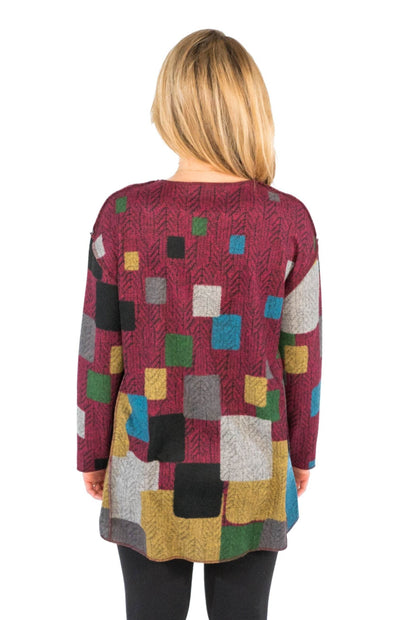 L'accessoire idéal pour compléter votre garde-robe ! Vous allez adorer ce top asymétrique à motif abstrait coloré, parfait pour l'automne !