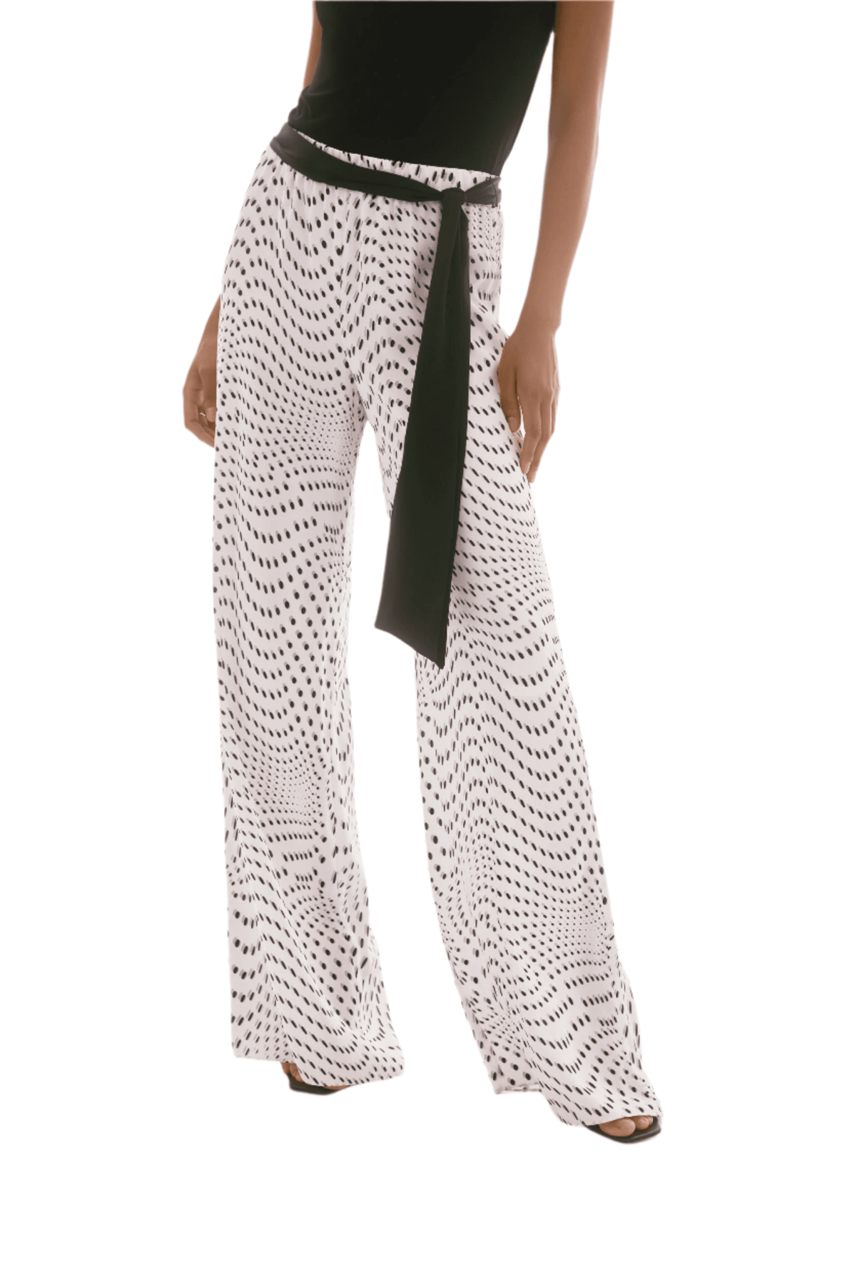 Découvrez le confort luxueux de ce pantalon à jambes larges, au fini satiné et au drapé impeccable. L'imprimé à pois apporte une touche d'élégance, tandis que la ceinture en satin noir assortie complète l'ensemble. Un incontournable de la collection Signature.