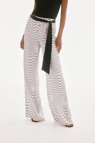 Satin Dot Print Belted Wide Leg Pants - Dream Pants