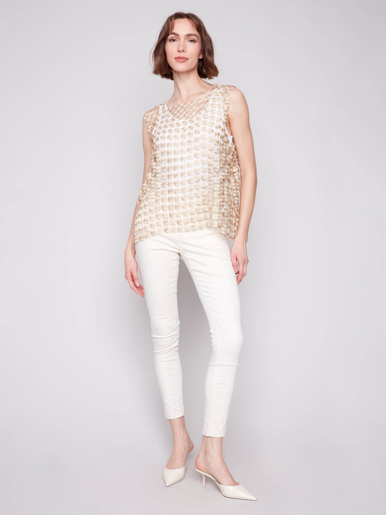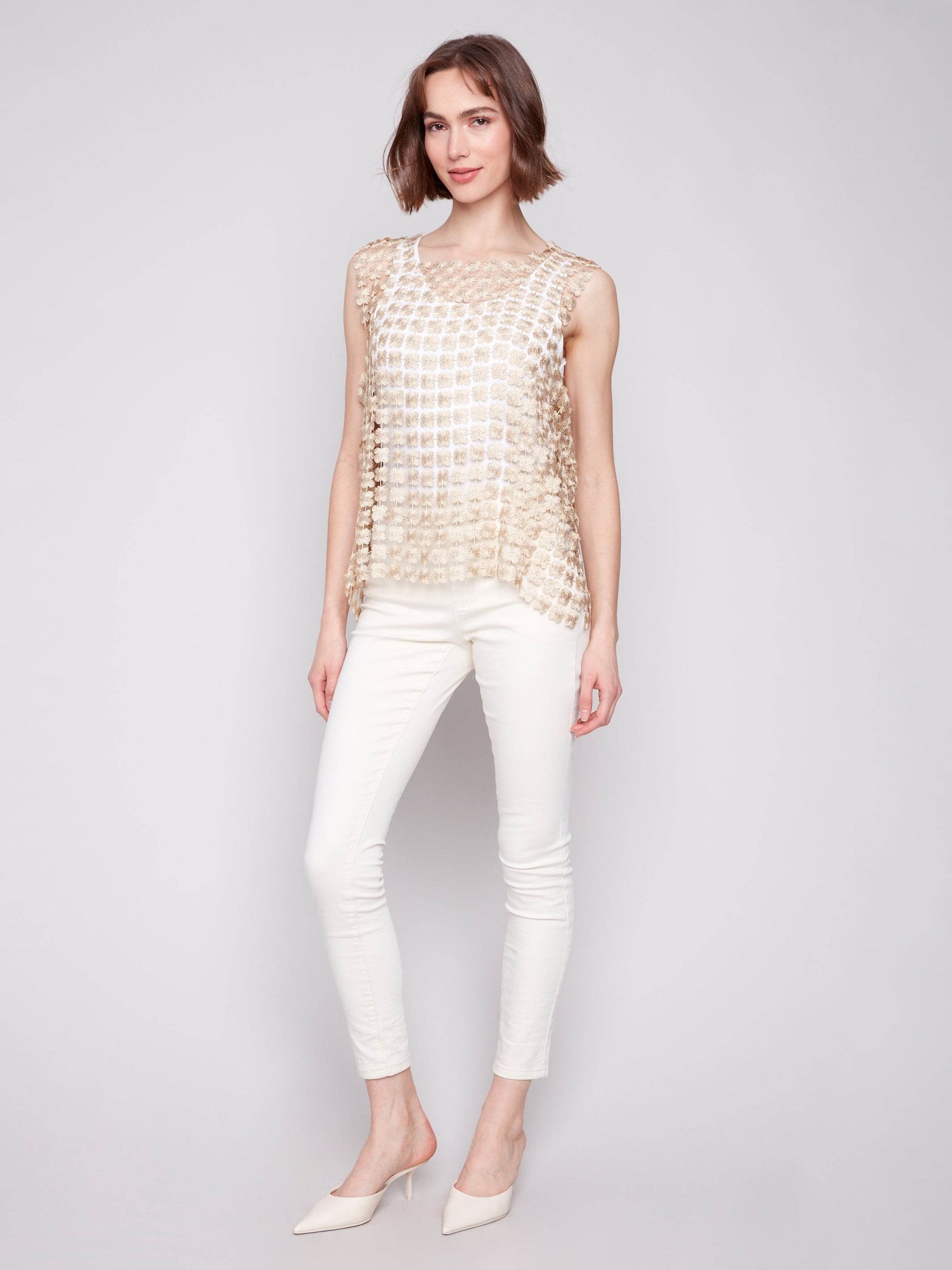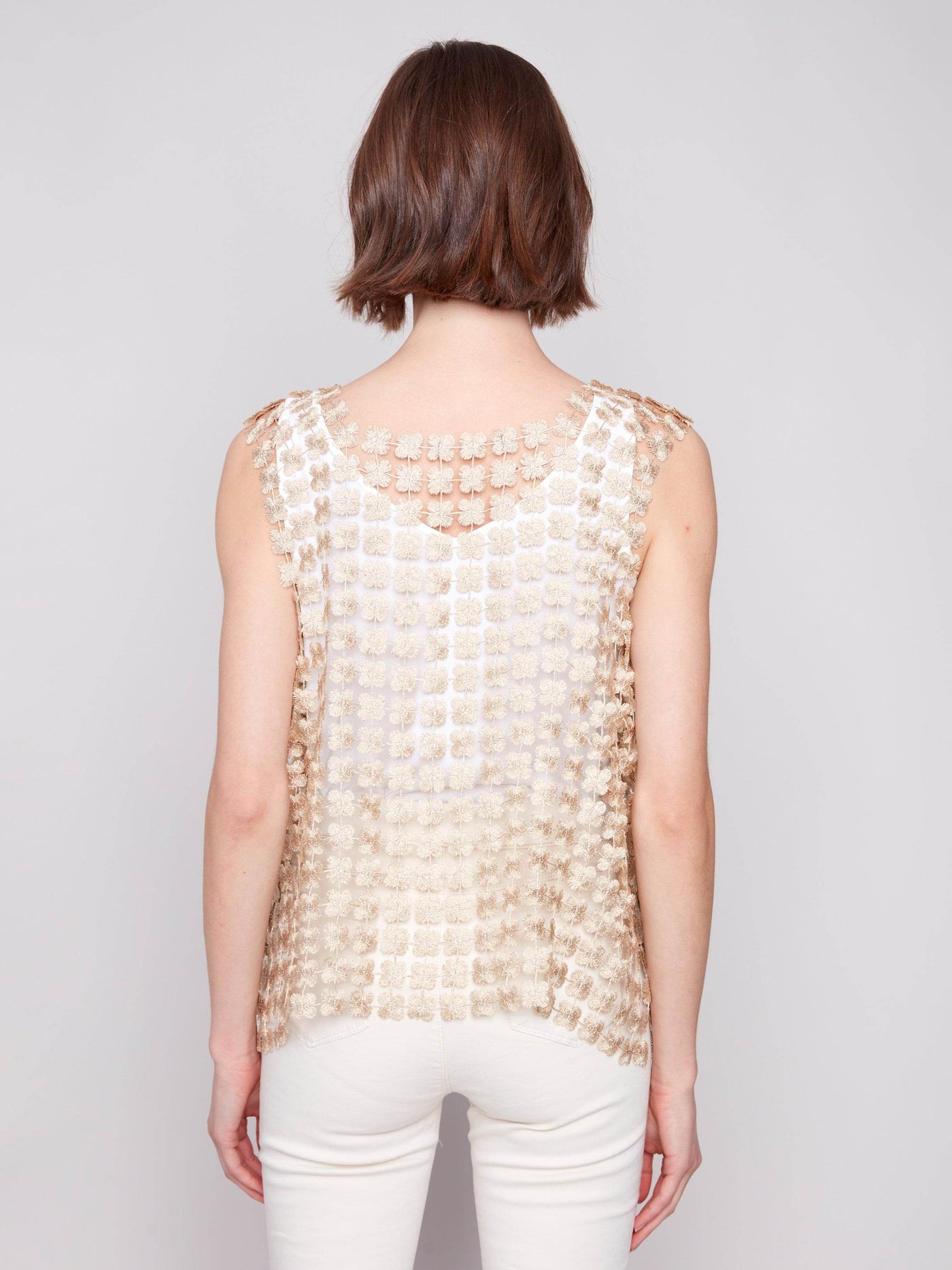 Sleeveless Textured Crochet Flower Top - Dream Pants