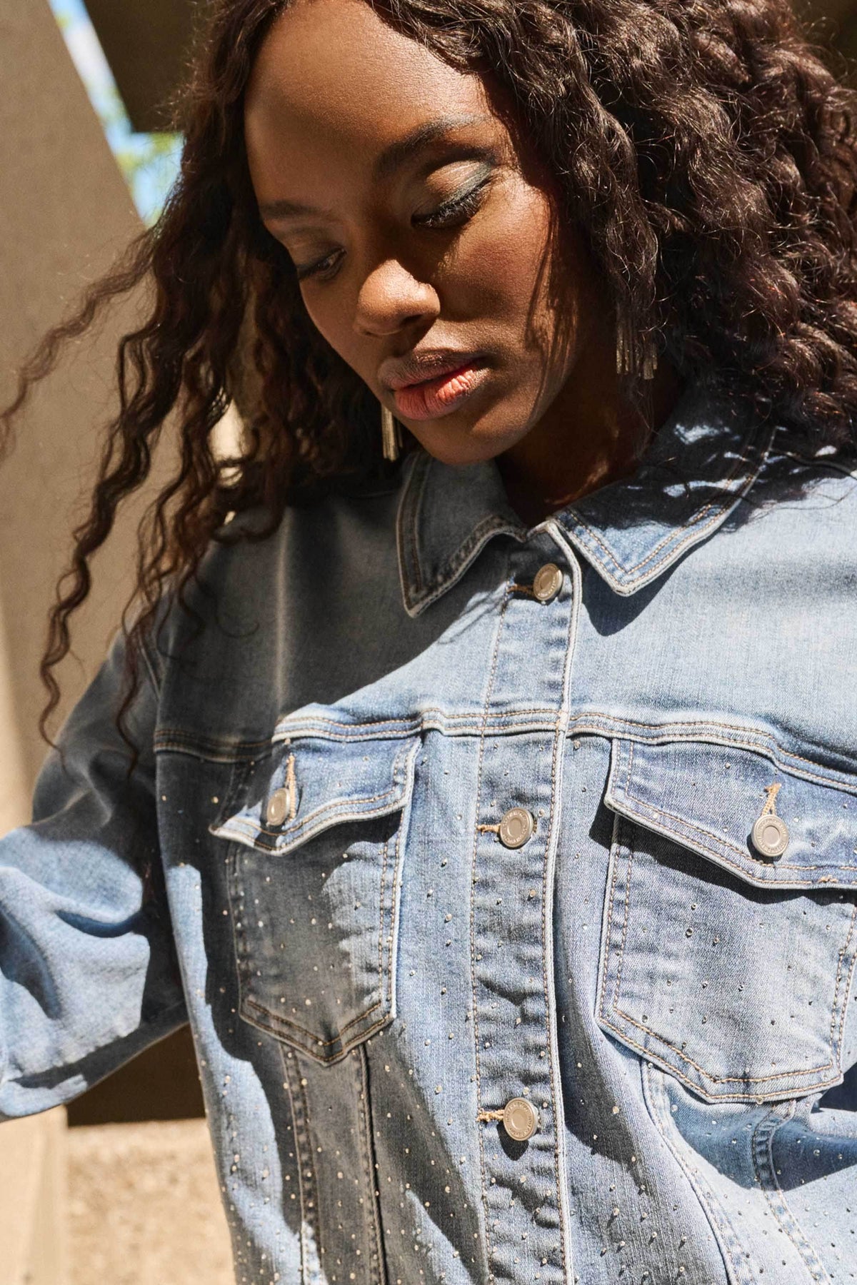 Apportez une touche de charme à votre garde-robe avec cette veste en jean stretch. Ornée de broderies et de strass scintillants, cette ravissante pièce rehausse vos robes et jupes d'une élégance simple et raffinée.