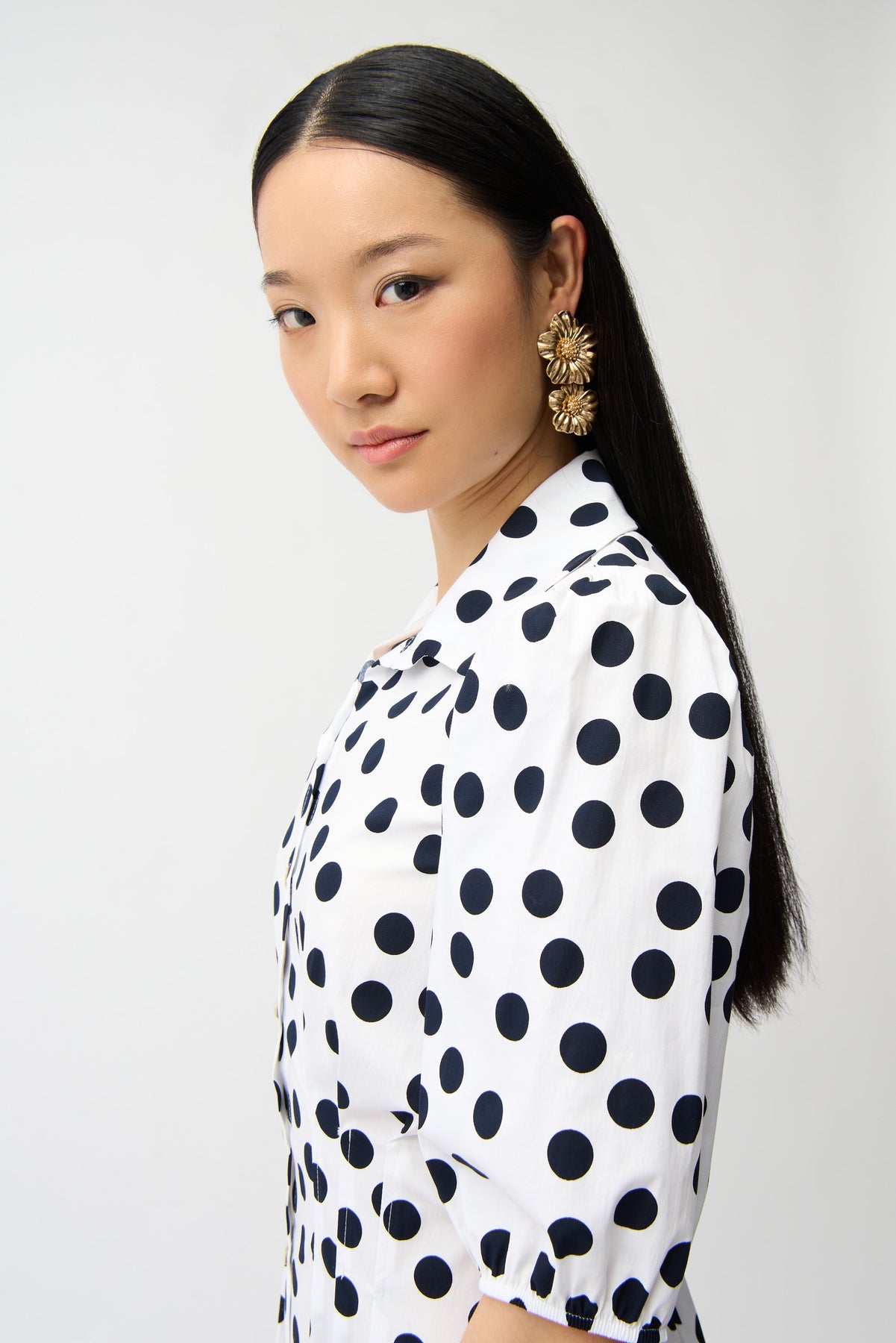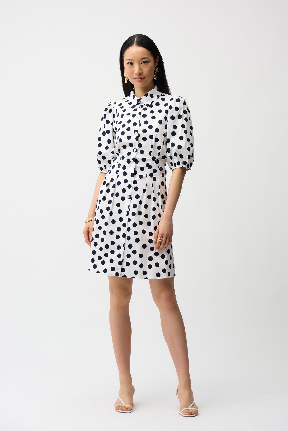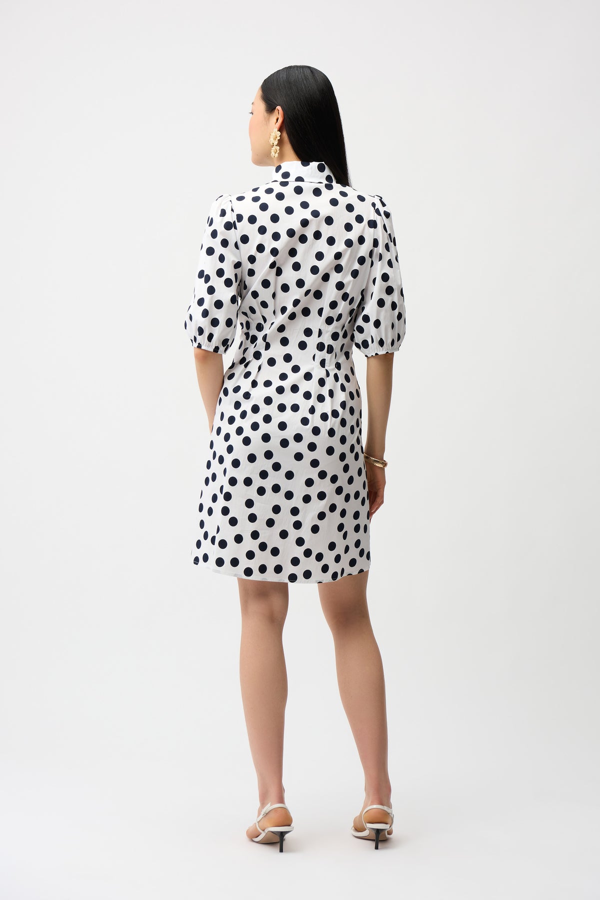 Stretch Poplin Dot Print A-Line Shirt Dress With Puff Sleeves Joseph Ribkoff