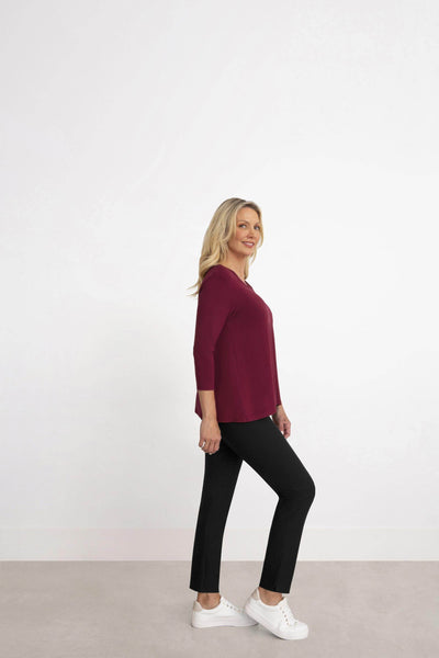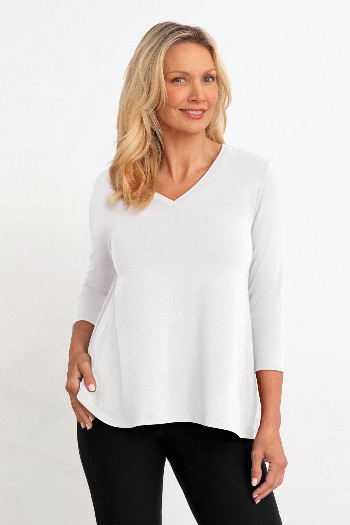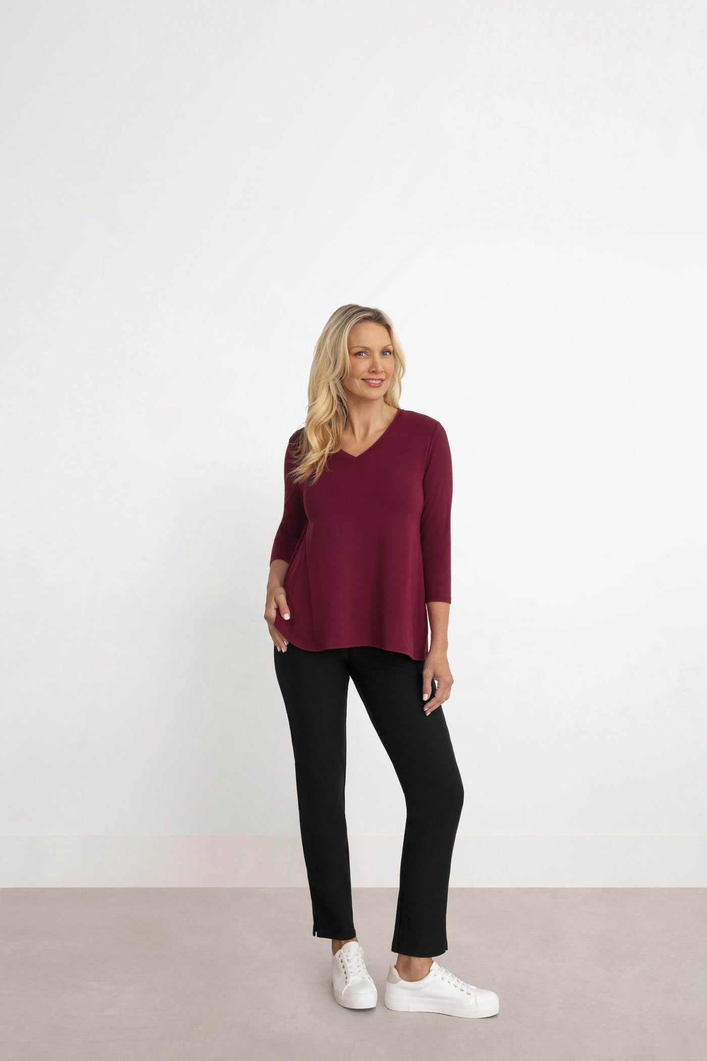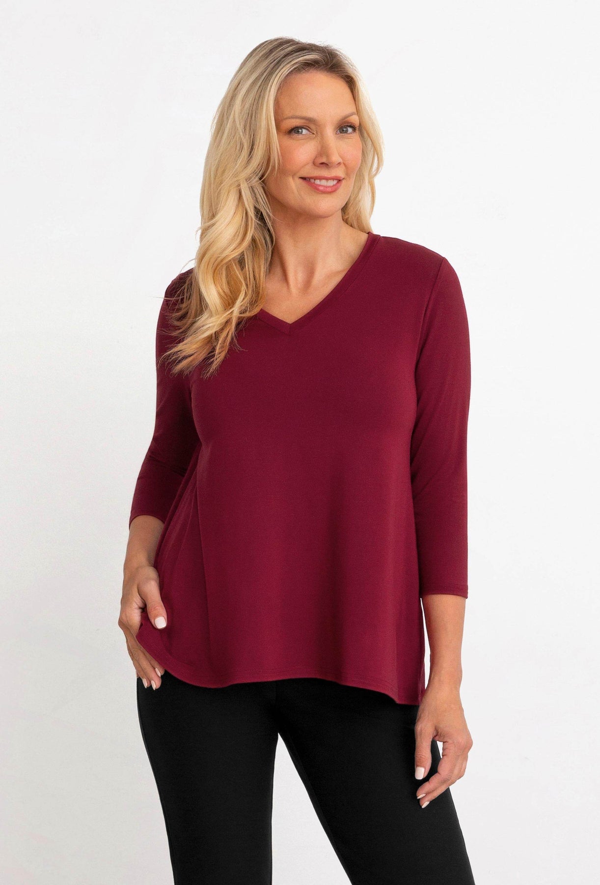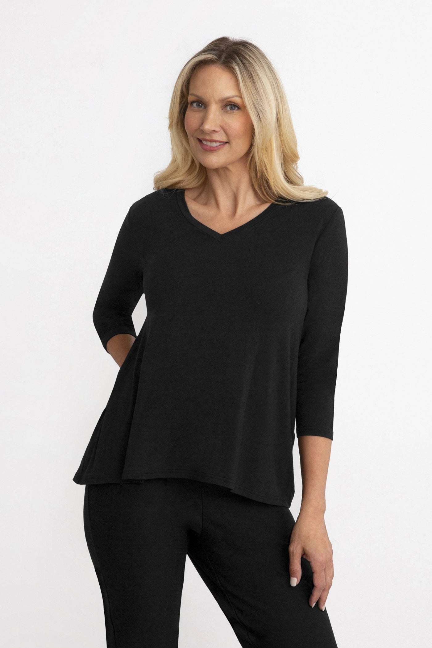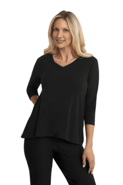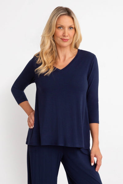 Sympli Bambou Col V Trapèze T, Manches 3/4, Style T4203-2, 4 Couleurs Disponibles