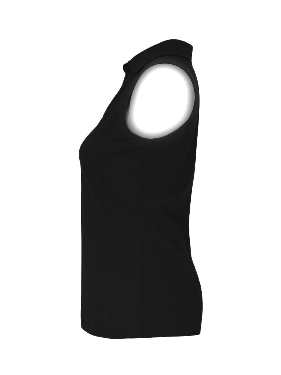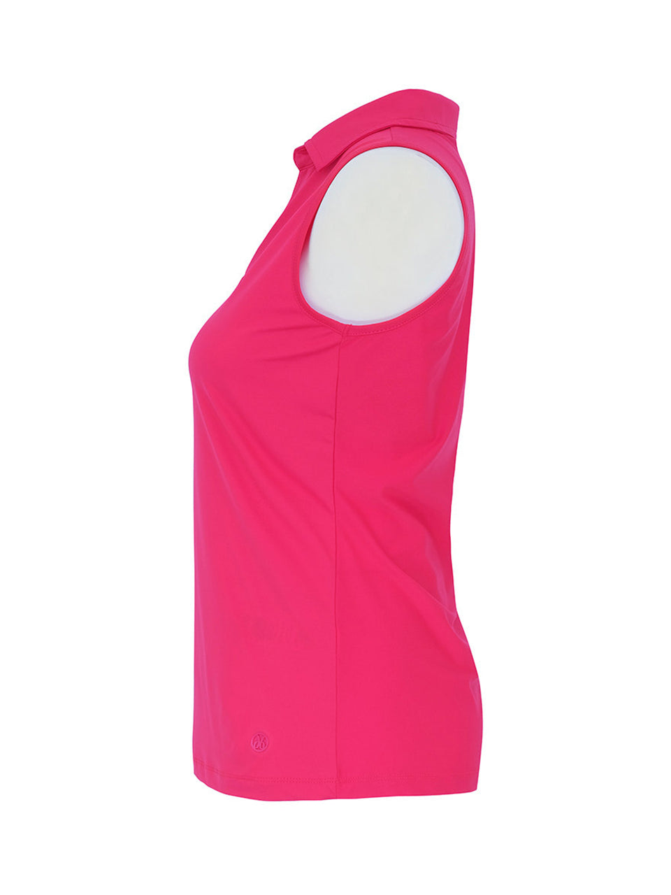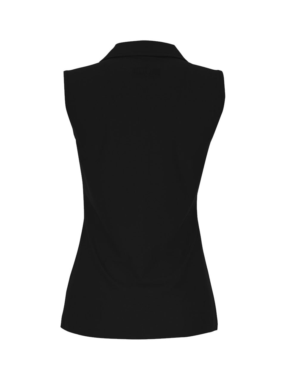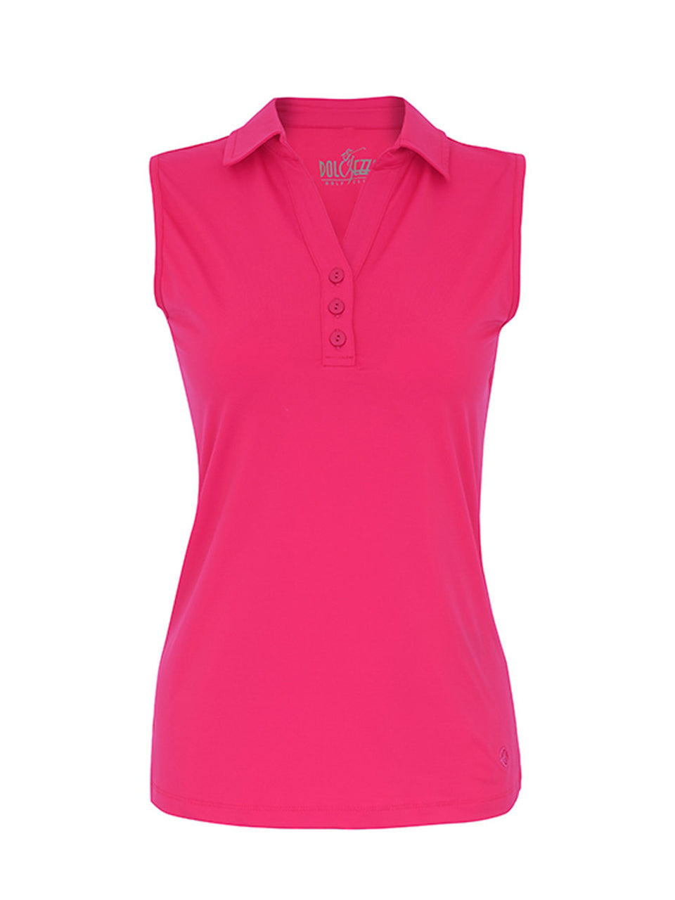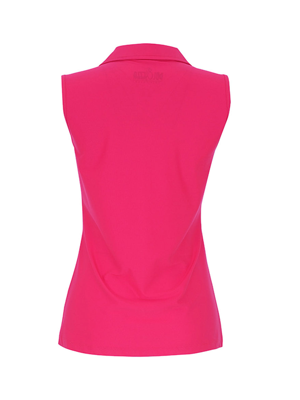 A refined essential designed for both performance and style. This sleeveless polo features a clean collar and button placket for a timeless, sporty look, while the smooth stretch fabric ensures comfort and freedom of movement. Its flattering, streamlined silhouette makes it perfect for the golf course, travel, or everyday wear. Easy to pair with skirts, shorts, or pants for a polished athletic outfit.
