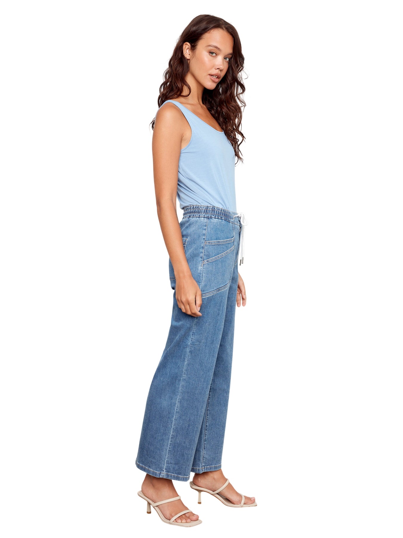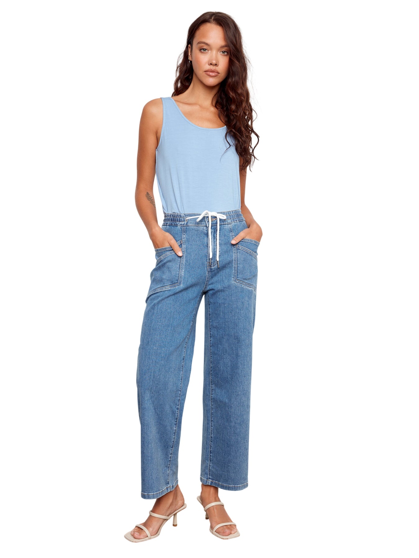 Pull-on denim that feels like your favorite sweatpants. These drawstring wide-leg pants feature a soft elastic waistband and lightweight fabric that moves with you, delivering comfort without sacrificing style. The relaxed silhouette and ankle-length cut work with everything in your closet—no compromise required.