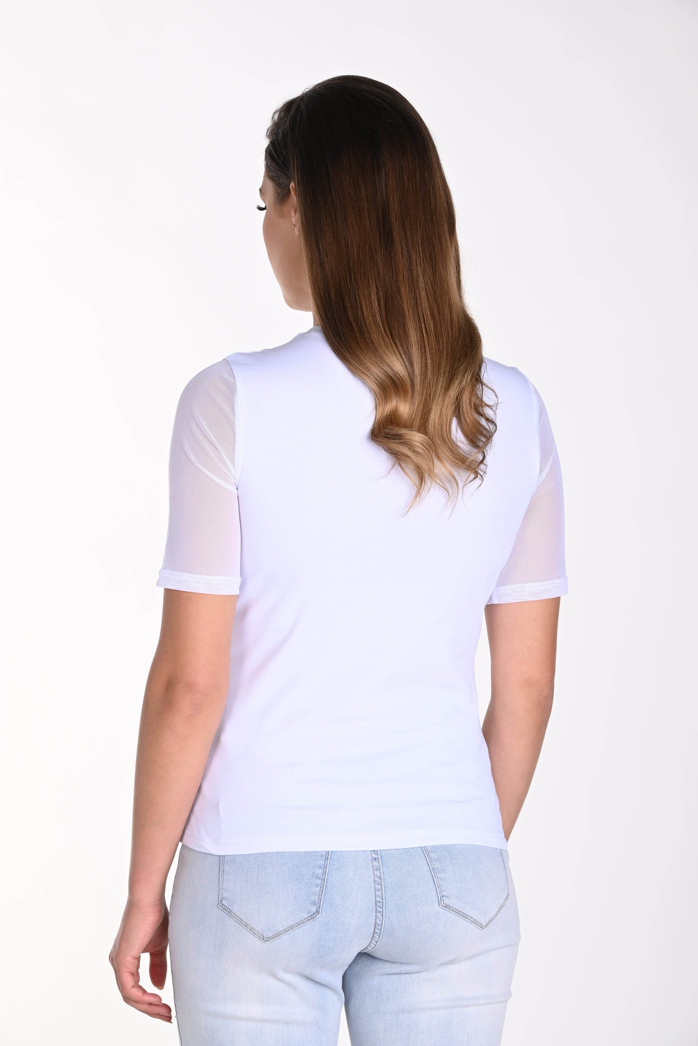 The knit fabric provides a comfortable and flattering silhouette, making this top a versatile choice for various occasions. Featuring embellishments and see-through sleeves, this top will take your outfit to the next level! Whether you're going for a casual look or dressing up for a special event, this Embellished Top offers the perfect blend of comfort and chic style.