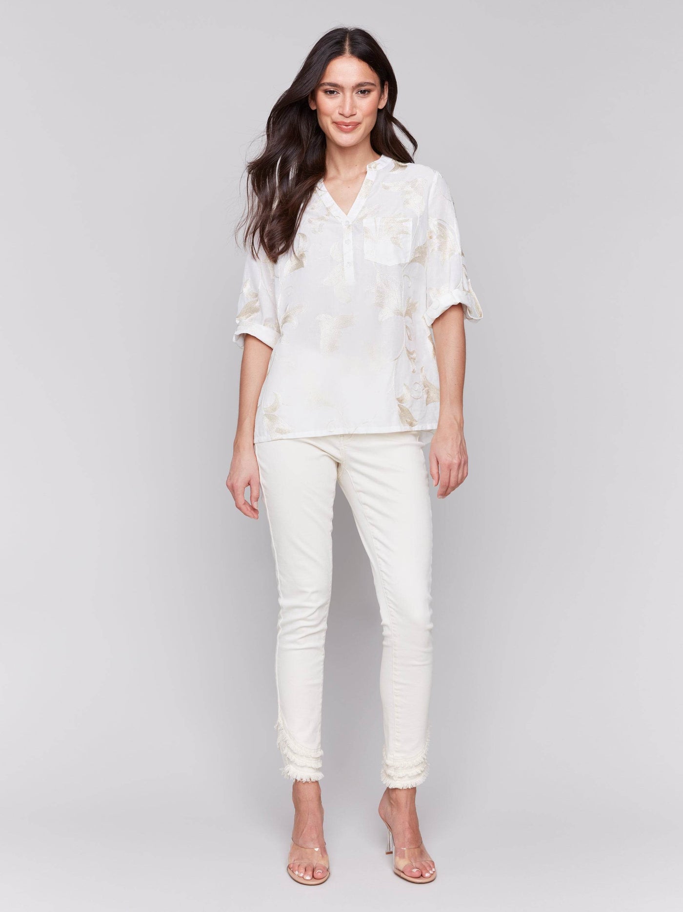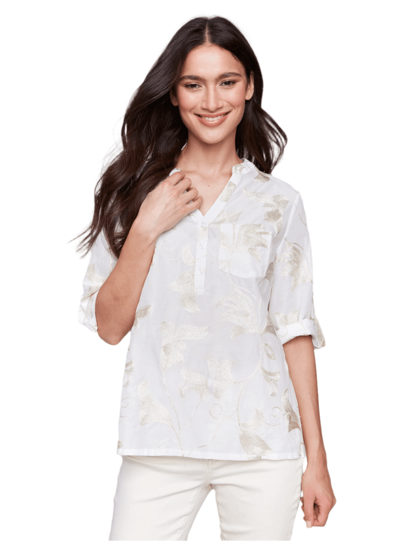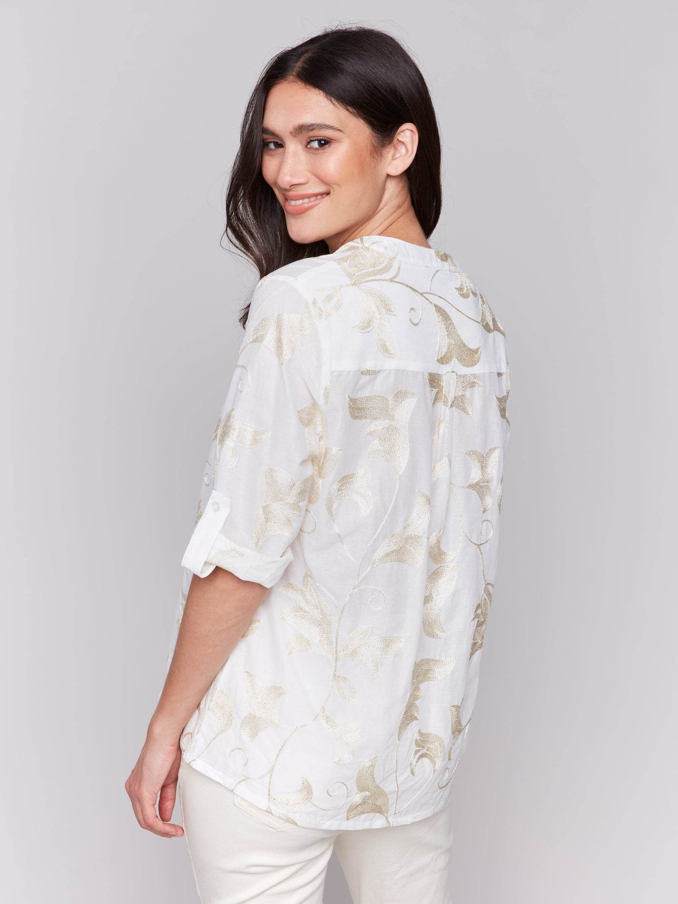 Embroidered Cotton Half-Button Blouse - Dream Pants