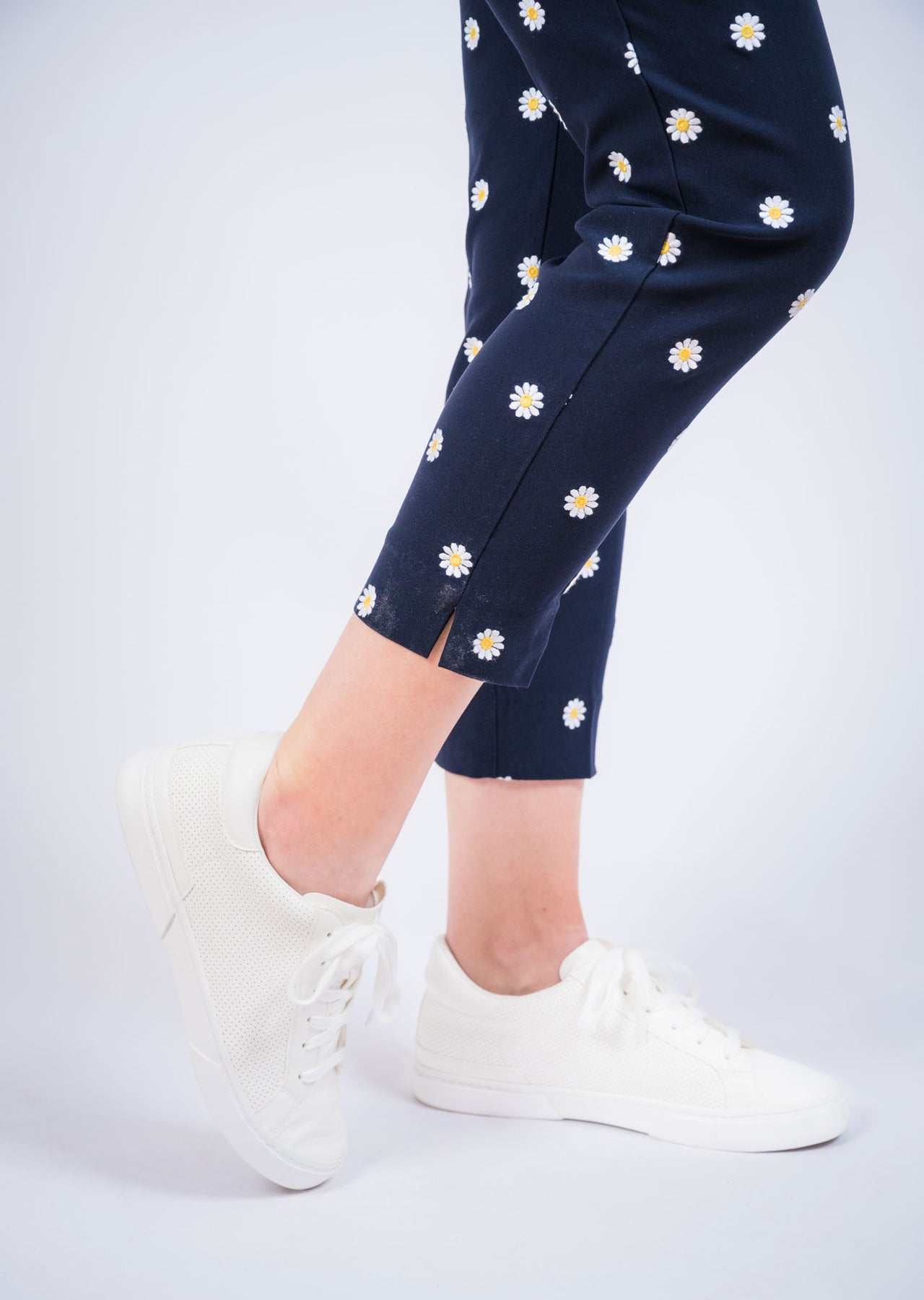 Embroidered Daisy 26” Slim Crop with Notch Lisette L