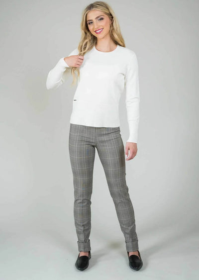 The Feline plaid fabric is expertly woven with regenerated cellulose fiber, polyester, and spandex. This unique blend results in a breathable and highly stretchable material.