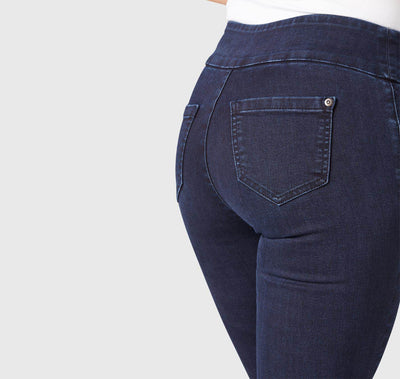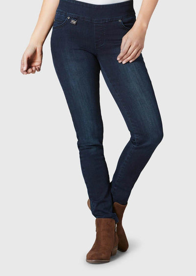 Lisette L's classic Sylvia Slim-Cut Denim Pant is redefining casual wear as we know it. These five-pocket, crisp dark-denim pull-on jeans hold everything in and lift everything up while making sure you’re as comfortable as can be.