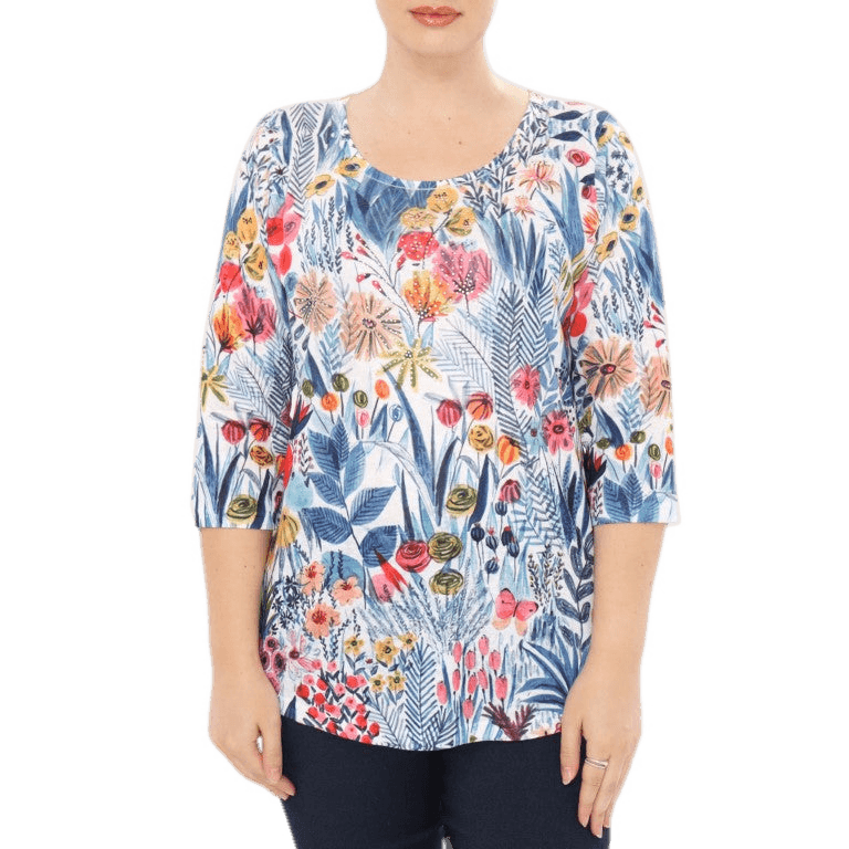 Make a statement with every step you take, and elevate your wardrobe to new heights. With our Printed 3/4 Sleeve Top, you'll exude confidence and sophistication with each wear. Embrace the art of fashion and make a lasting impression with this luxurious top.