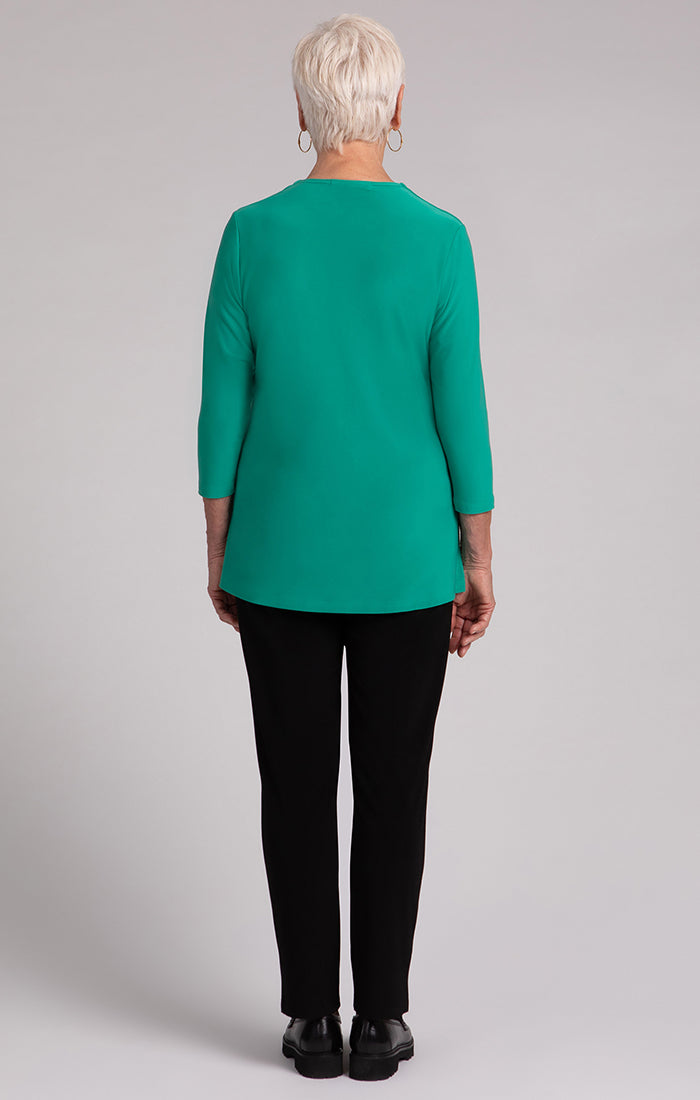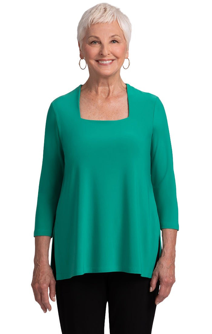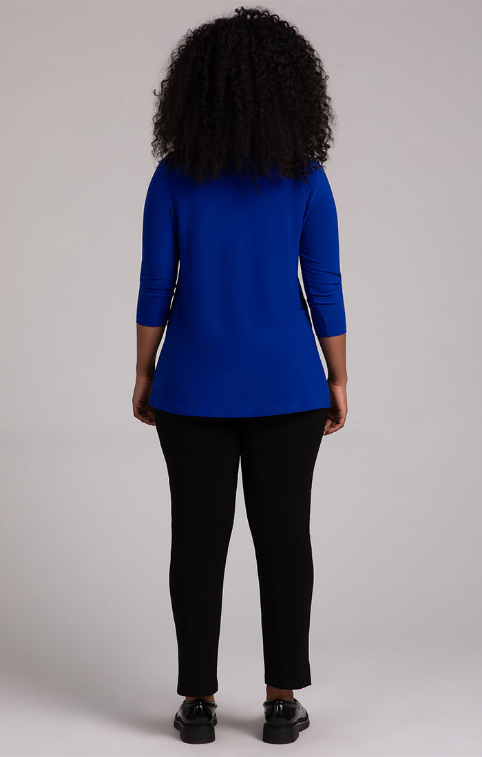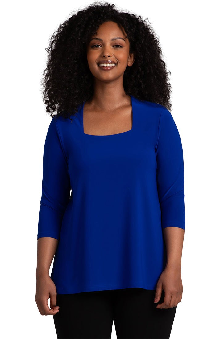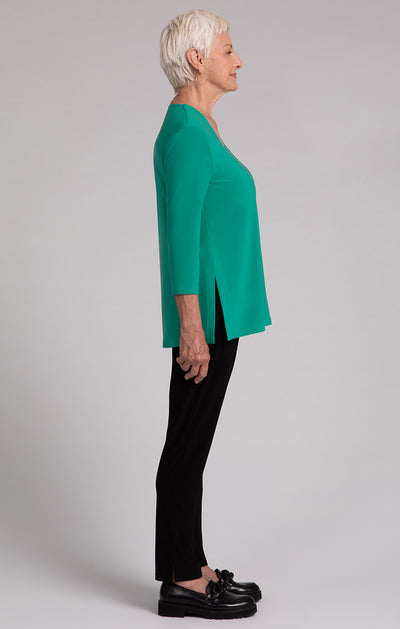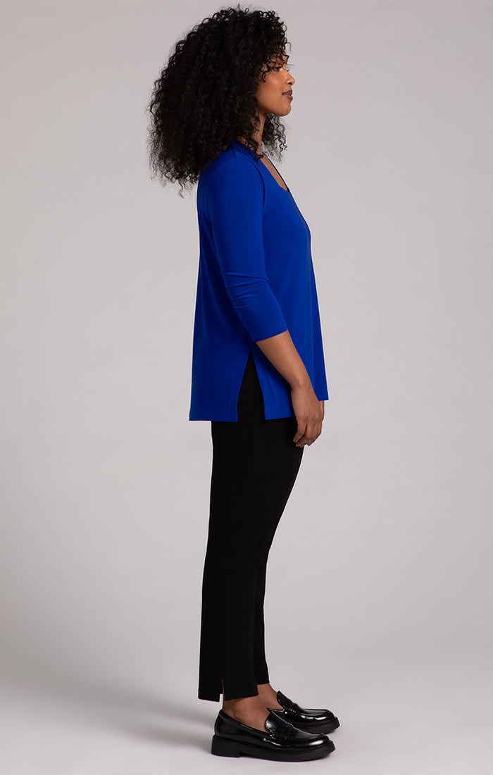 This year-round essential is designed with a double-layered front for optimal coverage. The neckline boasts a sophisticated, tapered structure for a feminine touch. Enjoy our iconic relaxed fit with elegant side slits. Crafted from our signature effortless jersey fabric.